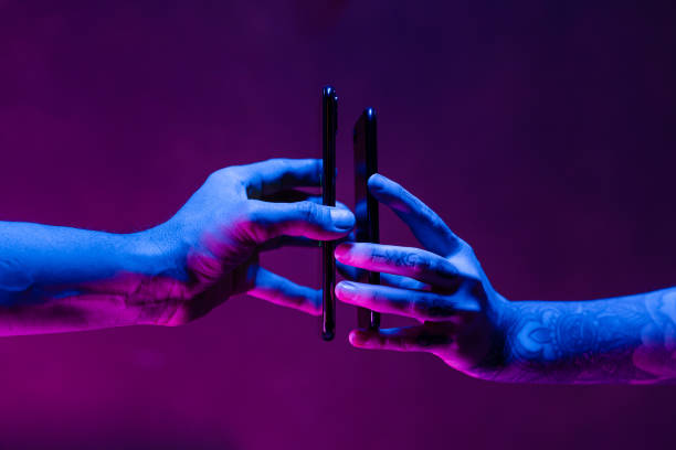 Speech bubble with particles on color gradient background. Digitally generated image.